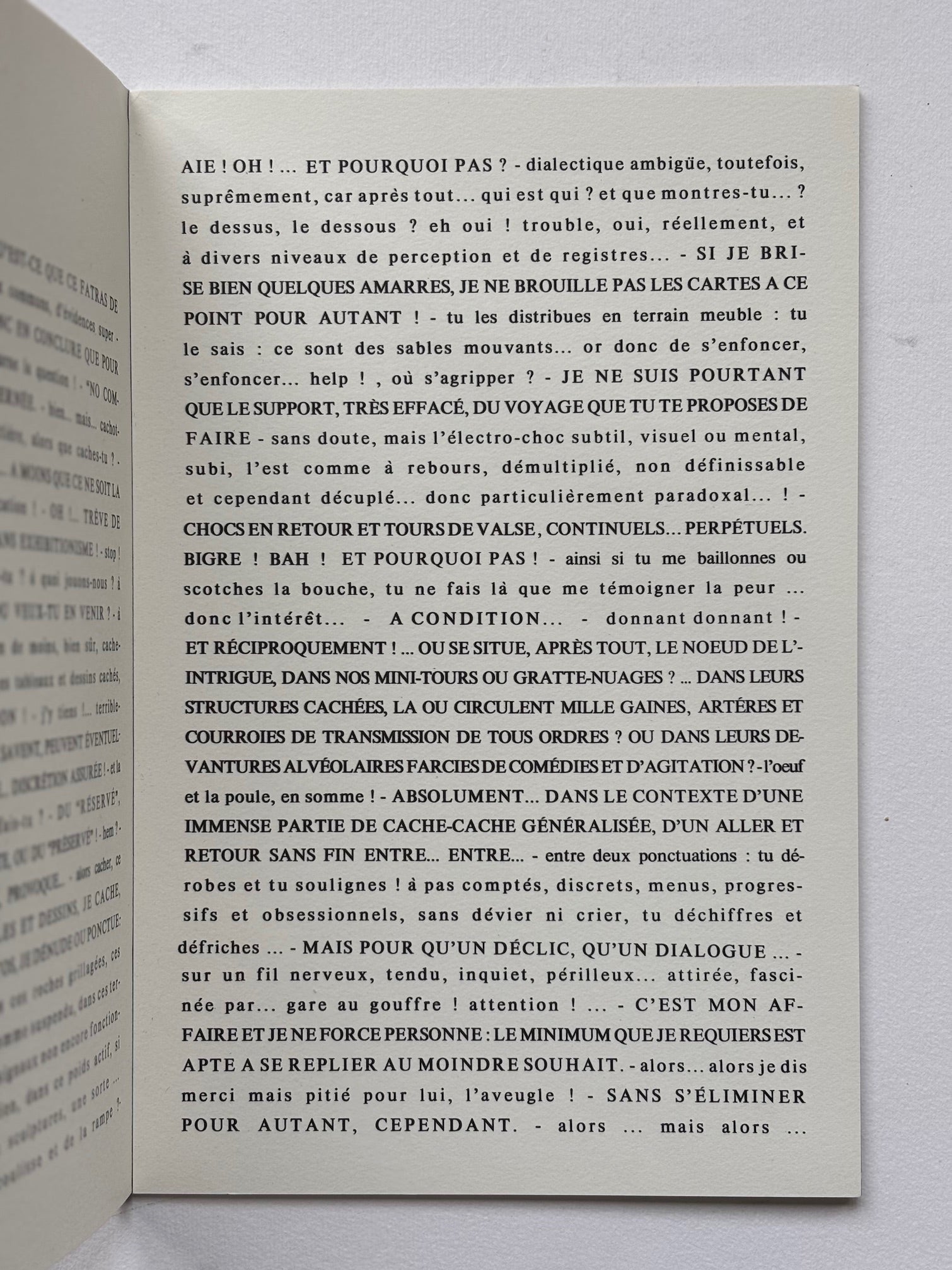 One of the 50 signed - by both Françoise JANICOT and Bernard HEIDSECK - and numbered copies of the special edition, with a loosely laid-in signed and numbered collage/montage by Françoise JANICOT. Text in three parts by HEIDSECK, written in