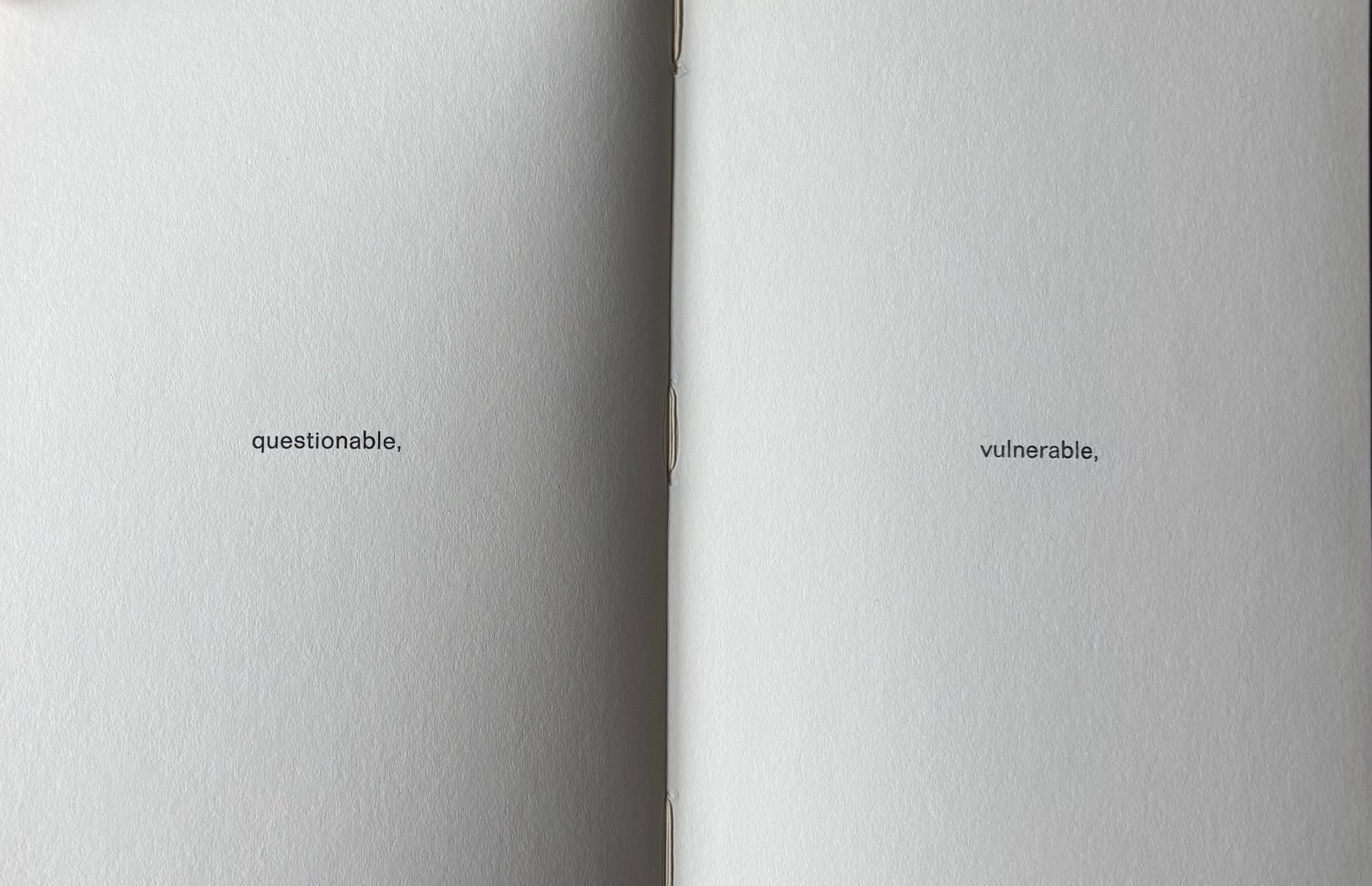 First edition. 72 adjectives - one on each page - successively asserted and denied.