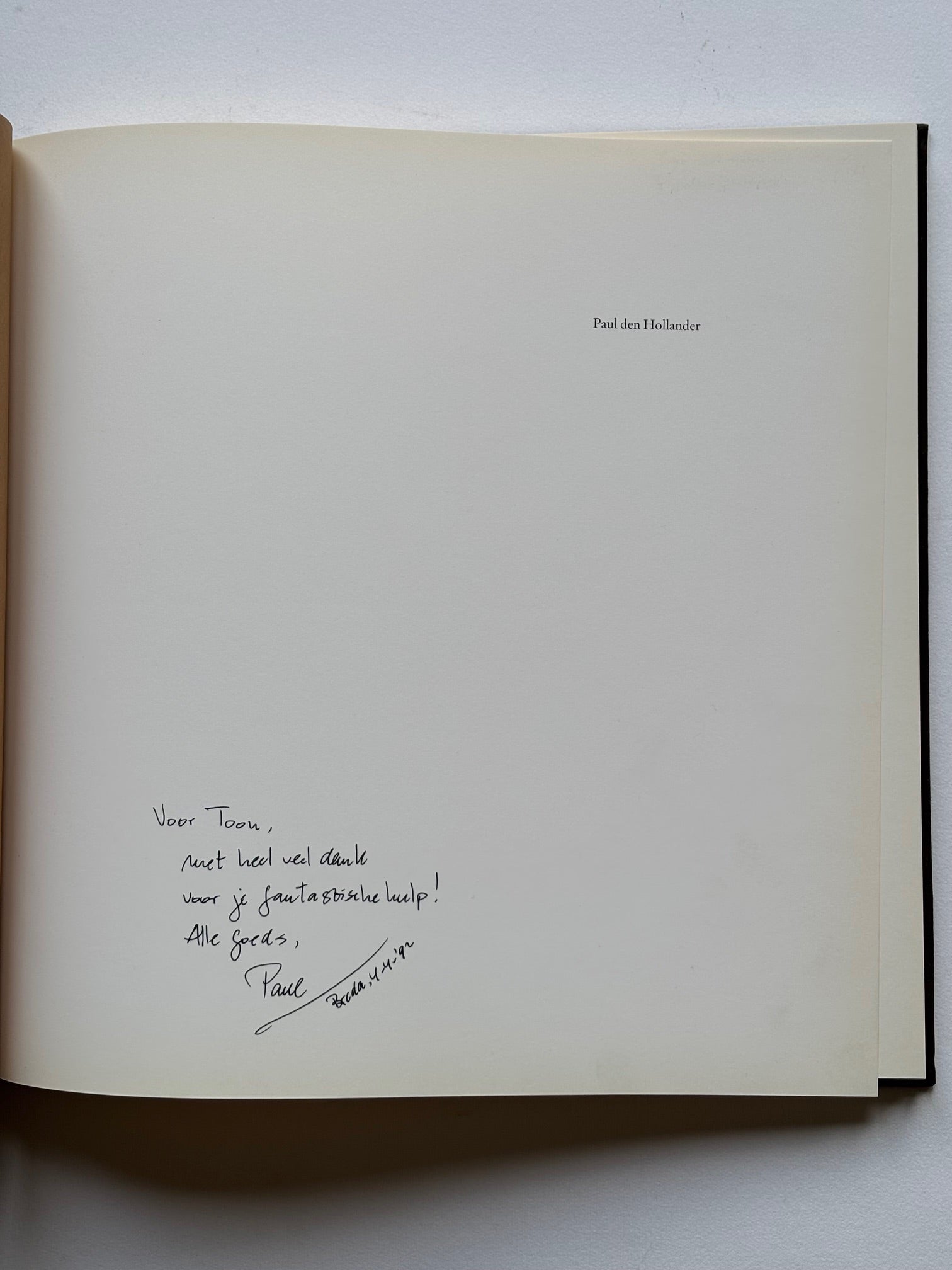 54 images printed in duotone of what used to be a coal-mining region in the North of France.This copy has been dedicated by Paul den HOLLANDER to the Dutch photographer and designer Toon MICHIELS in 1992. This copy with a loosely inserted original black & white photograph (310 x 278 mm.), signed, dated (“1989”) and numbered (“XII”) by DEN HOLLANDER at the reverse.