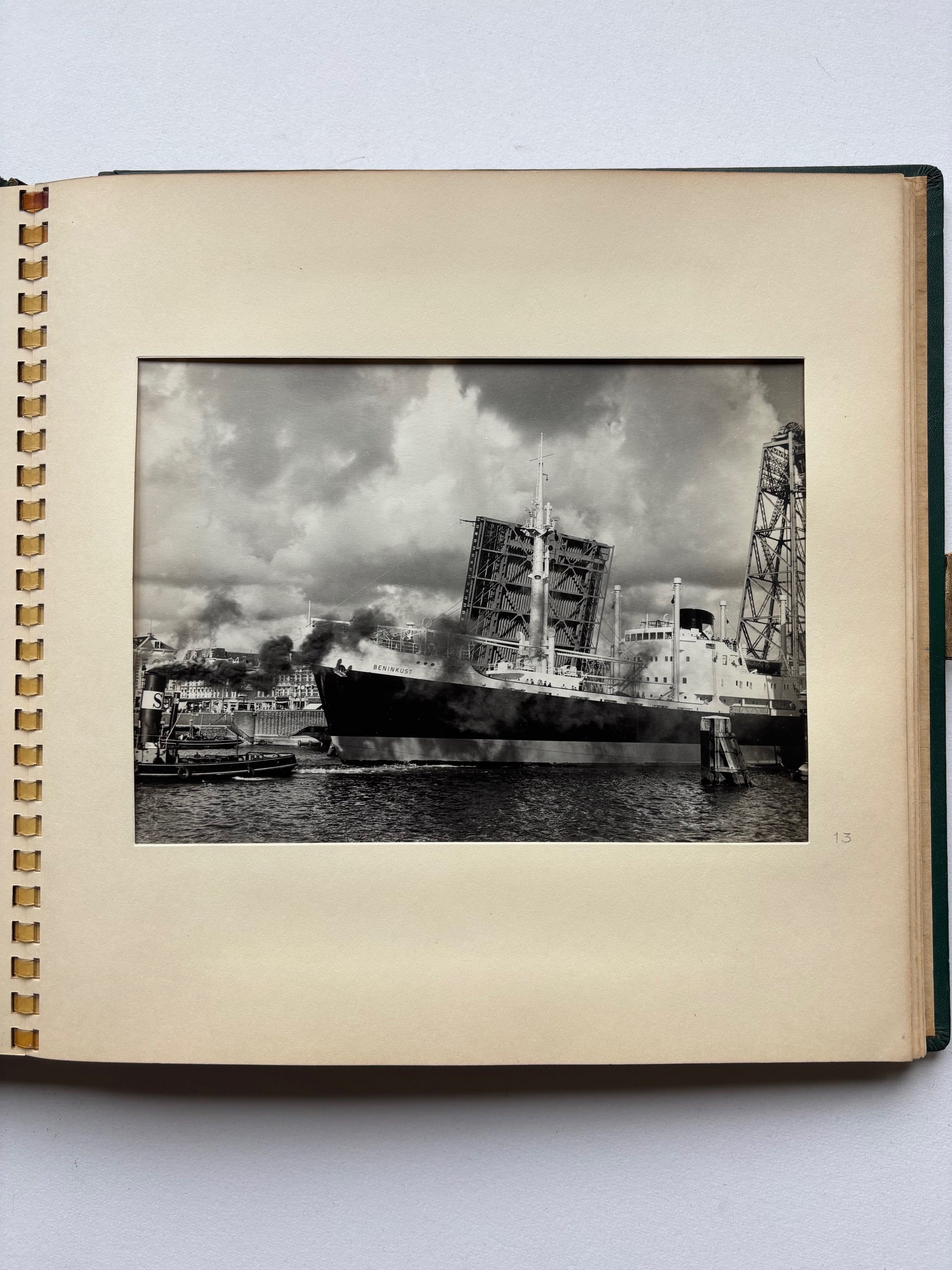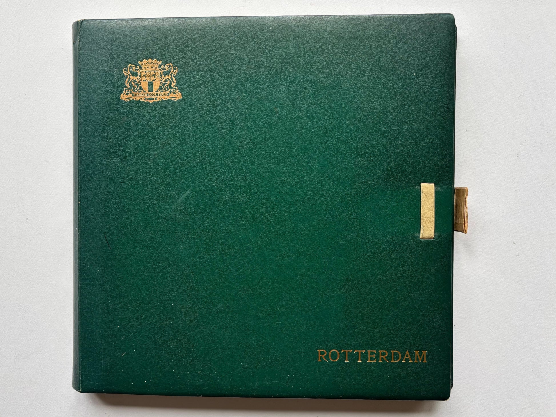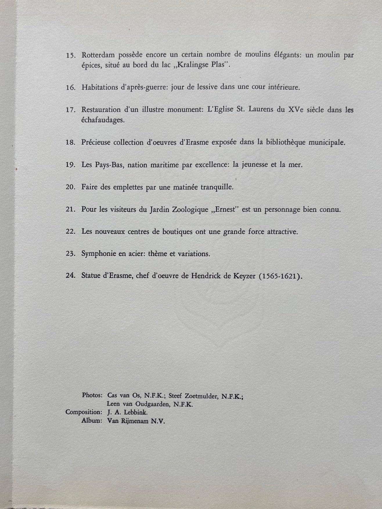 This (unique?) album - with a pasted on printed folded list with captions in French – has probably been given as a present to an important guest of the municipal council of Rotterdam and was probably made in the late 1950s, early 1960s, judging by the 24 mounted photos (235 x 170 mm., each), including the one of Zadkine's famous monument for the city of Rotterdam, which was unveiled in 1953.